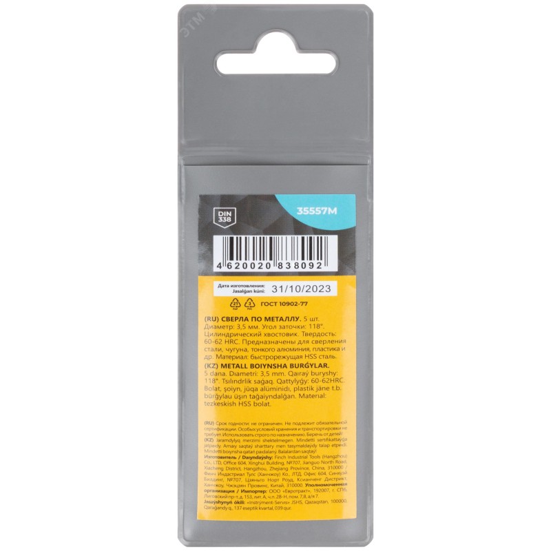 - Тип изделия:сверло по металлу