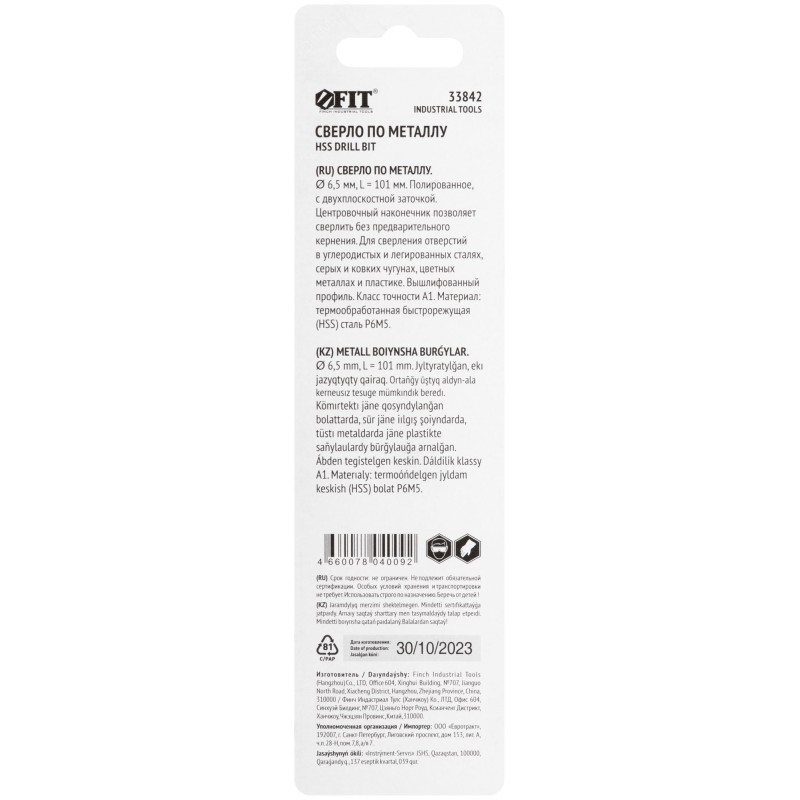- Тип изделия:Сверло по металлу