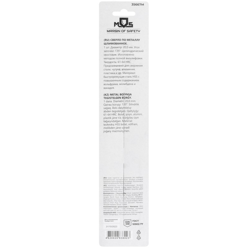 - Тип изделия:Сверло по металлу