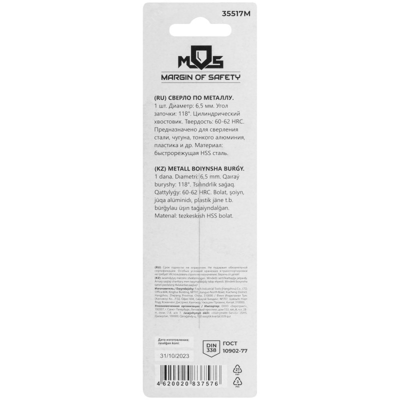 Cверло по металлу MOS предназначено для сверления стали, чугуна, тонкого алюминия, пластика. Сверло изготовлено из быстрорежущей стали марки HSS4241 методом продольно винтового проката с углом заточки 118 градусов. Соответствует ГОСТу 10902-77 и европейскому стандарту DIN338. Цилиндрический хвостовик совместим с большинством типов патронов электроинструментов.