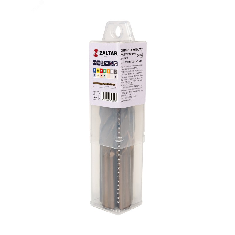 - Дополнительная информация:количество в наборе, шт - 5|технический стандарт - DIN 338|материал - HSS-E Co5|тип сверла - VA|диаметр сверла, мм - 13.0|рабочая длина, мм - 101|длина, мм - 151|глубина реза - 5xD|угол заточки, градусов - 130|угол спирали, градусов - 36|тип хвостовика - цилиндрический|тип заточки - DIN1412-C - крестообразная подточка перемычки