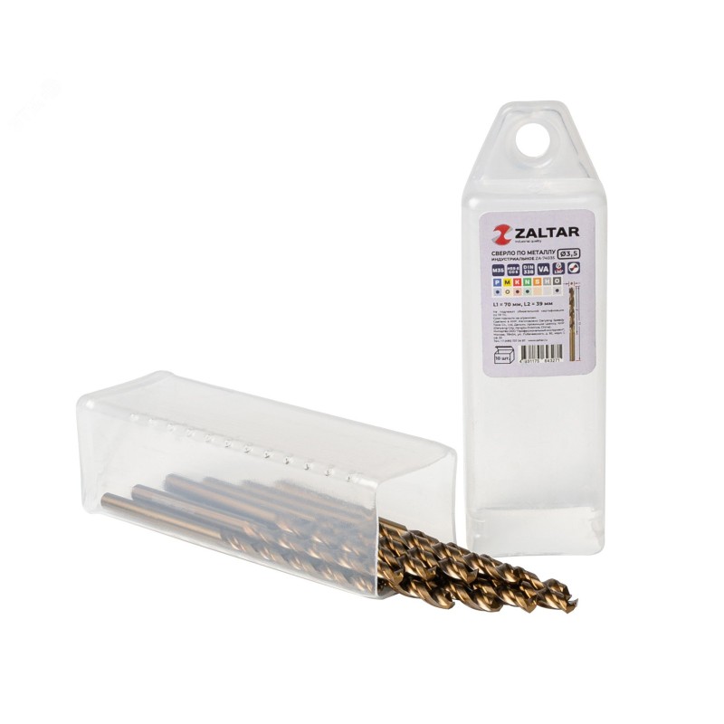 - Дополнительная информация:количество в наборе, шт - 10|технический стандарт - DIN 338|материал - HSS-E Co5|тип сверла - VA|диаметр сверла, мм - 3.5|рабочая длина, мм - 39|длина, мм - 70|глубина реза - 5xD|угол заточки, градусов - 130|угол спирали, градусов - 36|тип хвостовика - цилиндрический|тип заточки - DIN1412-C - крестообразная подточка перемычки