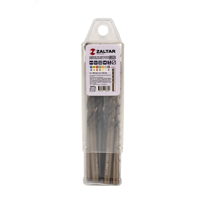 - Дополнительная информация:количество в наборе, шт - 10|технический стандарт - DIN 338|материал - HSS-E Co5|тип сверла - VA|диаметр сверла, мм - 5.0|рабочая длина, мм - 52|длина, мм - 86|глубина реза - 5xD|угол заточки, градусов - 130|угол спирали, градусов - 36|тип хвостовика - цилиндрический|тип заточки - DIN1412-C - крестообразная подточка перемычки