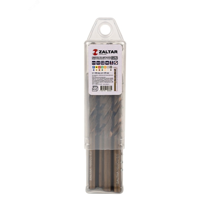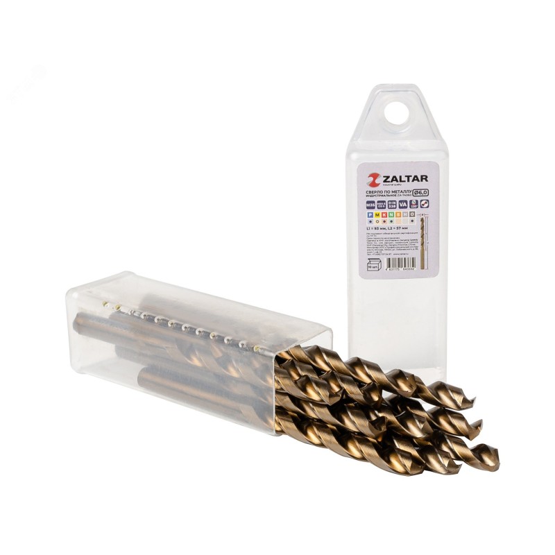 - Дополнительная информация:количество в наборе, шт - 10|технический стандарт - DIN 338|материал - HSS-E Co5|тип сверла - VA|диаметр сверла, мм - 6.0|рабочая длина, мм - 57|длина, мм - 93|глубина реза - 5xD|угол заточки, градусов - 130|угол спирали, градусов - 36|тип хвостовика - цилиндрический|тип заточки - DIN1412-C - крестообразная подточка перемычки