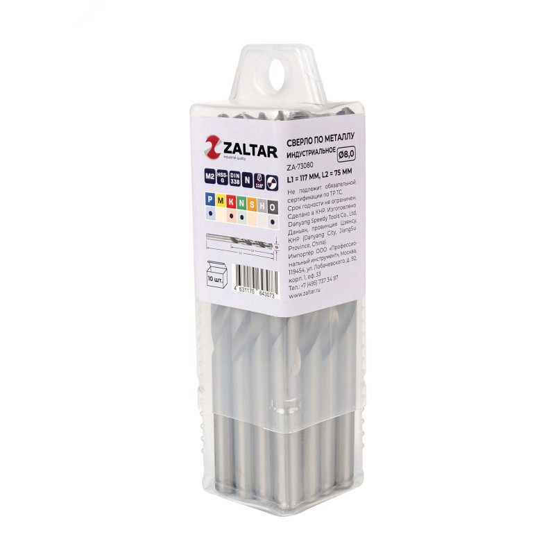 - Дополнительная информация:количество в наборе, шт - 10|технический стандарт - DIN 338|материал - HSS-G|тип сверла - N|диаметр сверла, мм - 8.0|рабочая длина, мм - 75|длина, мм - 117|глубина реза - 5xD|угол заточки - 118 градусов|угол спирали - 25-30 градусов|тип хвостовика - цилиндрический|тип заточки - DIN1412-C - крестообразная подточка перемычки