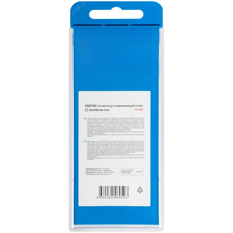 Сверло по металлу HSS-G Cutop Special применяется для выполнения сквозных/глухих отверстий в металлических заготовках – легированная и углеродистая сталь, серый и ковкий чугун, цветной металл и пластик. Цилиндрический хвостовик у сверл диаметром от 2 до 5,5 мм. Трехгранный хвостовик у сверл диаметром от 6 до 13 мм. Угол заточки 135, класс точности А1 и длинная спиральная конструкция сверла обеспечивают быстрое, стабильное сверление. Сверла HSS-G имеют повышенную твердость благодаря полной шлифовки режущей поверхности нитридом бора. Это обеспечивает высокое качество обработки стенок отверстий. Лазерная маркировка размера и материала сверла. Материал – быстрорежущая высококачественная сталь HSS-G (63-67 HRC). Упаковка – подвесной пластиковый бокс/блистер.