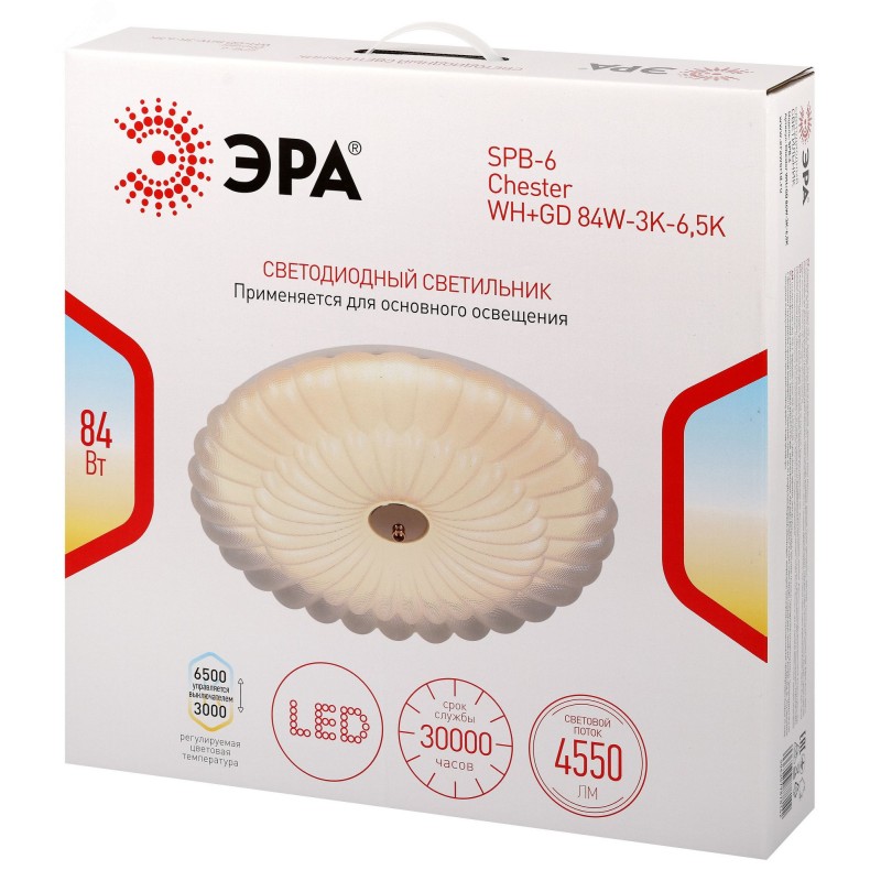 Светодиодный светильник ЭРА SPB-6 Chester 84W-3K-6,5K WH+GD – современное решение для общего освещения жилых и коммерческих помещений. Компактные размеры 490?92 мм позволяют использовать его в сухих пространствах (степень защиты IP20) с низкими потолками, а необычная форма плафона сочетается со многими интерьерными стилями. Мощность светильника 84 Вт, а световой поток – 4550 лм. Матовый рассеиватель обеспечивает равномерное распределение света без бликов и дискомфорта для глаз. Цветовая температура регулируется в диапазоне 3000К-6500К, создавая комфортные условия для работы и отдыха. Рекомендуемая площадь освещения – 21 м2. Встроенные светодиоды отличаются низким энергопотреблением, сроком службы до 30 000 часов и стабильным свечением без мерцания. Светильник легко монтируется, не требует обслуживания и может использоваться как основное или дополнительное освещение.
