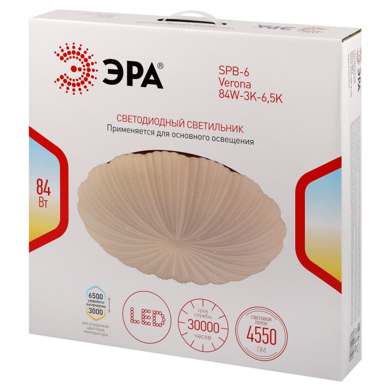 Светодиодный светильник ЭРА SPB-6 Verona 84W-3K-6,5K – современное решение для общего освещения жилых и коммерческих помещений. Компактные размеры 495?75 мм позволяют использовать его в сухих пространствах (степень защиты IP20) с низкими потолками, а круглый плафон сочетается со многими интерьерными стилями. Мощность светильника 84 Вт, а световой поток – 4550 лм. Матовый рассеиватель обеспечивает равномерное распределение света без бликов и дискомфорта для глаз. Цветовая температура регулируется в диапазоне 3000К-6500К, создавая комфортные условия для работы и отдыха. Рекомендуемая площадь освещения – 21 м2. Встроенные светодиоды отличаются низким энергопотреблением, сроком службы до 30 000 часов и стабильным свечением без мерцания. Светильник легко монтируется, не требует обслуживания и может использоваться как основное или дополнительное освещение.