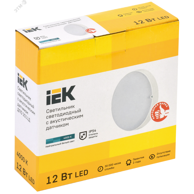 - Преимущества:Эффективность 95 лм/Вт| Степень защиты - IP54| Наличие акустического датчика срабатывающего на звук