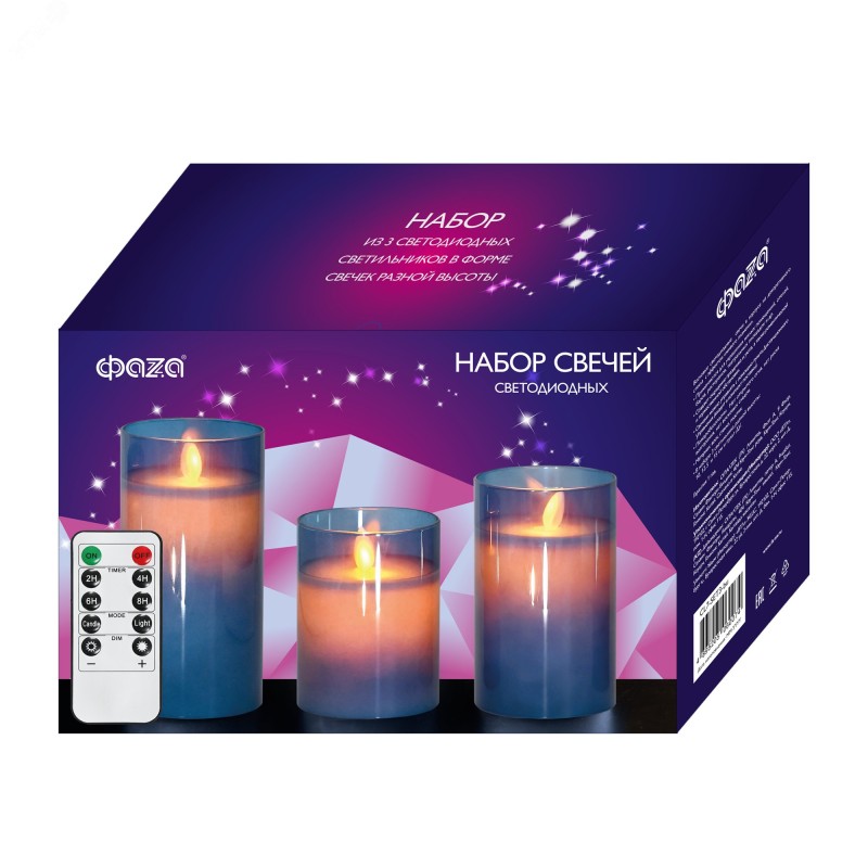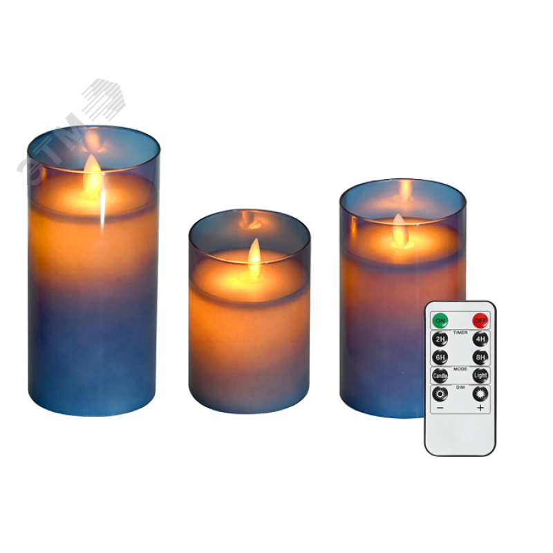 Светодиодный светильник Свечи (3 свечи, пульт ДУ, синие) CL7-SET3-bu ФАZА