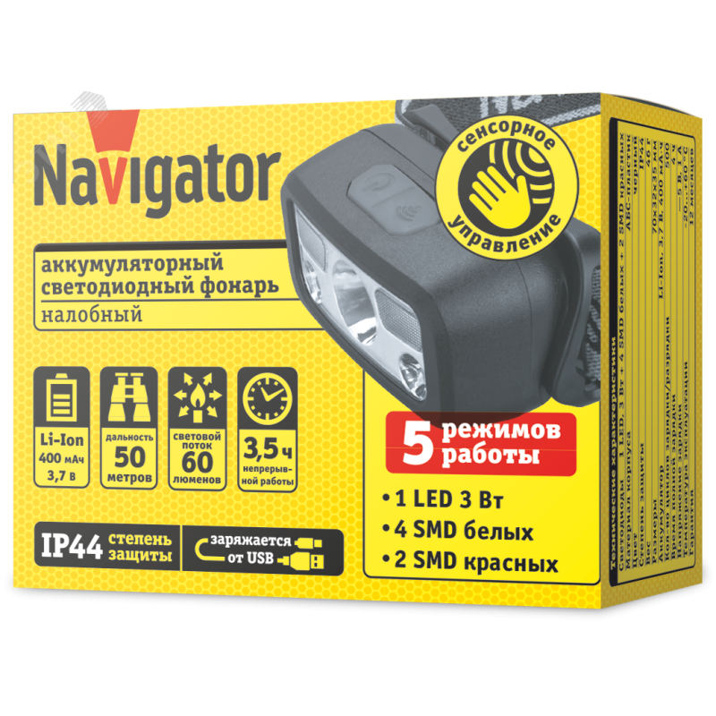 - Преимущества:Сенсорное управление – включение, выключение фонаря взмахом руки | Две раздельные кнопки управления со световой индикацией заряда | Мощный основной LED-диод, а также дополнительные SMD-диоды: 2 красного и 4 белого цвета | 5 режимов работы: основной свет 100% и 50% яркости, совместное свечение 100%, красный свет, мерцание красным светом | Литий-ионный аккумулятор заряжается через порт USB, кабель USB A/Type-C длиной 30 см поставляется в комплекте| Эластичные ремни оголовья регулируются по размеру | Легкий наклоняемый корпус выполнен из АБС-пластика, степень защиты от влаги и пыли IP44