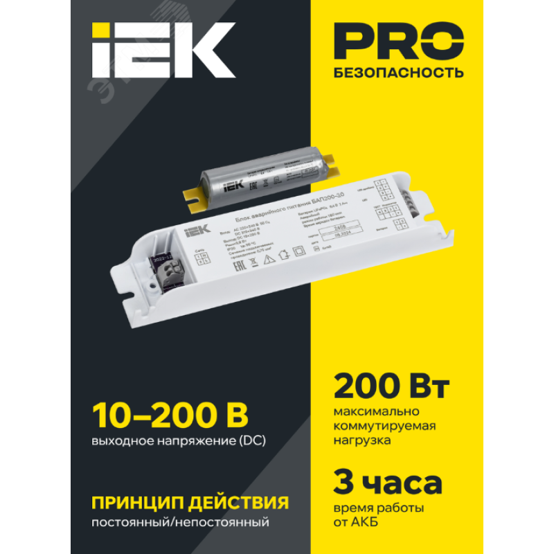 - Преимущества:Блоки БАП 200 имеют возможность питания светодиодных модулей различных конфигураций, от дискретных светодиодов до светодиодных линеек и плат, питаемых как постоянным током, так и постоянным напряжением|Блоки БАП 200 являются самостоятельным продуктом, так как подходят к светодиодным светильникам не зависимо от бренда|Блоки могут встраиваться внутрь светильника, устанавливаться на светильник или располагаться рядом с ним (например: за подвесным потолком)|Тип аккумулятора - Ni-CD|Работа в аварийном режиме - 3 ч|Имеет кнопку ''Тест'' и индикатор