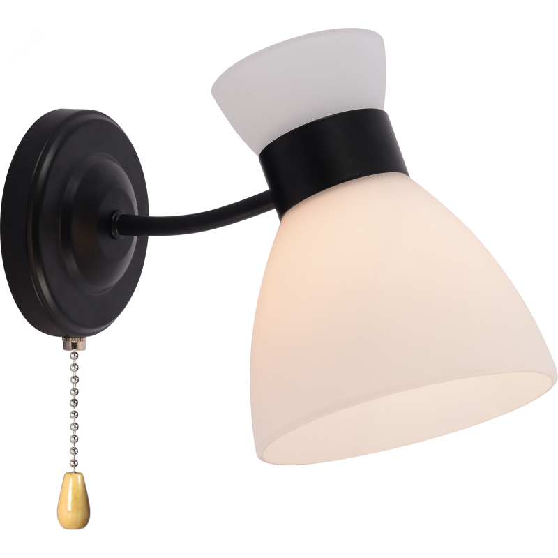 Серия чёрных светильников с опаловыми плафонами — стильное и функциональное решение для современного интерьера. В коллекции люстры на 5 и 8 ламп, а также бра с удобным выключателем-цепочкой. Подходят лампы с цоколем E27, мощностью до 60 Вт (лампы в комплект не входят).