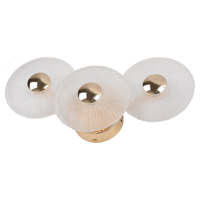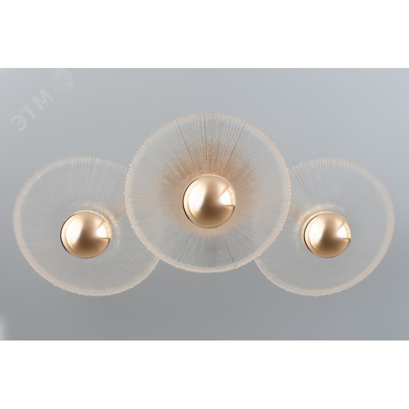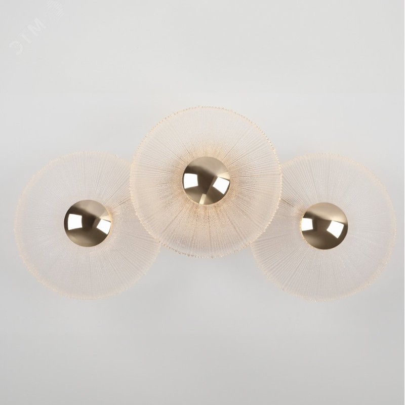 Оригинальную дизайнерскую коллекцию Rivoli Helena представляют: светодиодная люстра (арт. 6134-101) и светодиодный светильник-бра (арт. 6134-401). Отличительной особенностью этой нежной коллекции от европейских дизайнеров стали круглые прозрачные плафоны из стекла с декоративным рифлением. Встроенные светодиоды последнего поколения создают мягкое тёплое свечение с цветовой температурой 3000 К. Арматура коллекции окрашена в красивый золотой оттенок. Данная модель коллекции — настенный светильник мощностью 7 Вт. Три стеклянных светодиодных плафона создают ровный яркий свет — идеальный для прикроватного освещения, светового декора и зонирования пространства при помощи акцентного освещения.