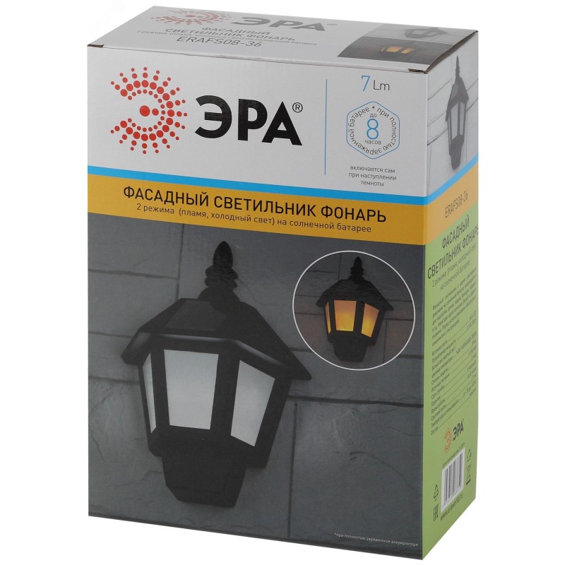 Светильник на солнечной батарее ERAFS08-36 станет чудесным дополнением фасада вашего дома, террасы, беседки. Беспроводной led светильник имеет два режима освещения - статичное белое и динамичный эффект пламени. Переключение происходит перемещением кнопки в стороны, а выключение переводом клавиши в середину ячейки. Уличный светильник работает на солнечной батарее. Данный способ получения энергии является самым экологичным, энергоемким, а также бесшумным. Питание происходит во включенном режиме, в дневное время. После захода солнца фонарик загорается. Его окошки заливаются спокойным светом, создавая уютную обстановку. Дизайн светильника в ретро-стиле хорошо подойдет для размещения его среди растений или при входе в дом. Подсветка может длиться непрерывно в течение 8 часов. Высокая степень защиты от пыли и влаги позволяет оставлять светильник на улице даже во время дождя.