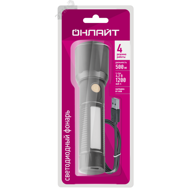 - Преимущества:4 режима работы: луч 100% и 50%, мерцание, кемпинг | Яркость режимов диммируется длительным нажатием на кнопку включения | Эффективная линза и яркие светодиоды создают мощный световой луч дальностью до 500 метров | Zoom-фокусировка луча производится одним легким движением | Литий-ионный емкий аккумулятор обеспечивает до 6 часов автономной работы в режиме луч 50% | Кабель для зарядки USB A/Type-C 30 см в комплекте | Световая индикация заряда на корпусе | Ударопрочный легкий корпус из АБС-пластика защищен от влаги и пыли, степень защиты IP44 | Светодиоды служат до 100 000 часов | Диапазон рабочих температур от -20 до +60 градусов Цельсия | Гарантия - 1 год.