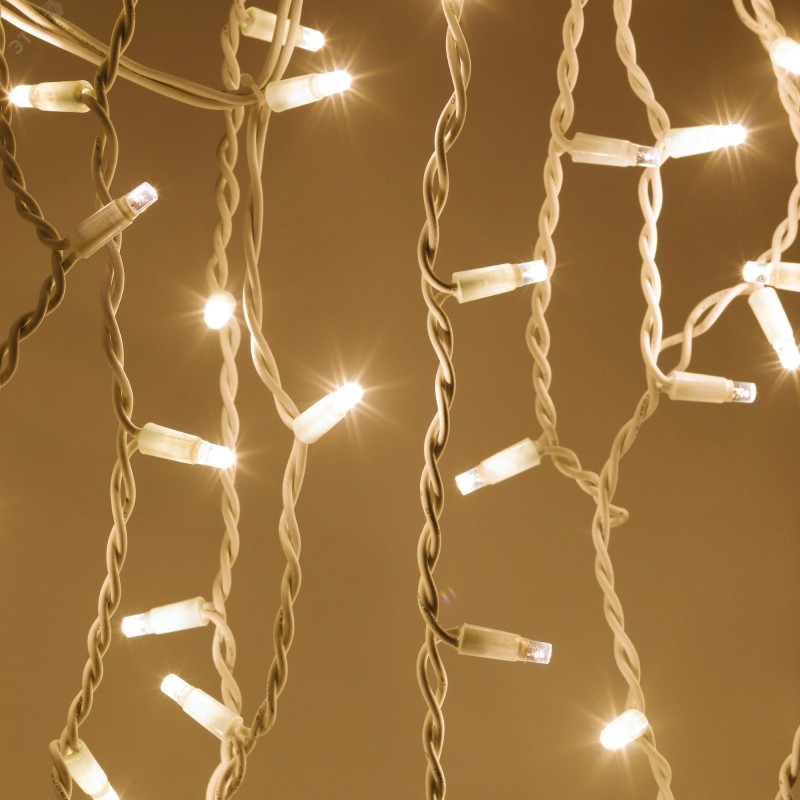 Новогодняя светодиодная гирлянда Занавес защищена от осадков, имеет высокий международный индекс пылевлагозащиты - IP65. Подходит для применения внутри и снаружи помещений. Напряжение питания 220v (шнур для подключения в комплект не входит) Степень защиты: IP65, Размер: 2 х 3 м., Количество ламп: 600 LED (10% - мерцающих). Свет: теплый белый, цвет провода: прозрачный, Материал: ПВХ, медь, алюминий.