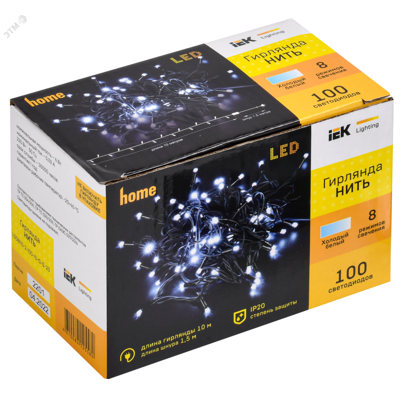 - Преимущества:БЕЗОПАСНА - выполнена из негорючих материалов и имеет защиту от короткого замыкания|Увеличенное сечение проводника исключает перегрев, разрыв и возгорание гирлянды|8 режимов работы гирлянды|Соответствует ГОСТ