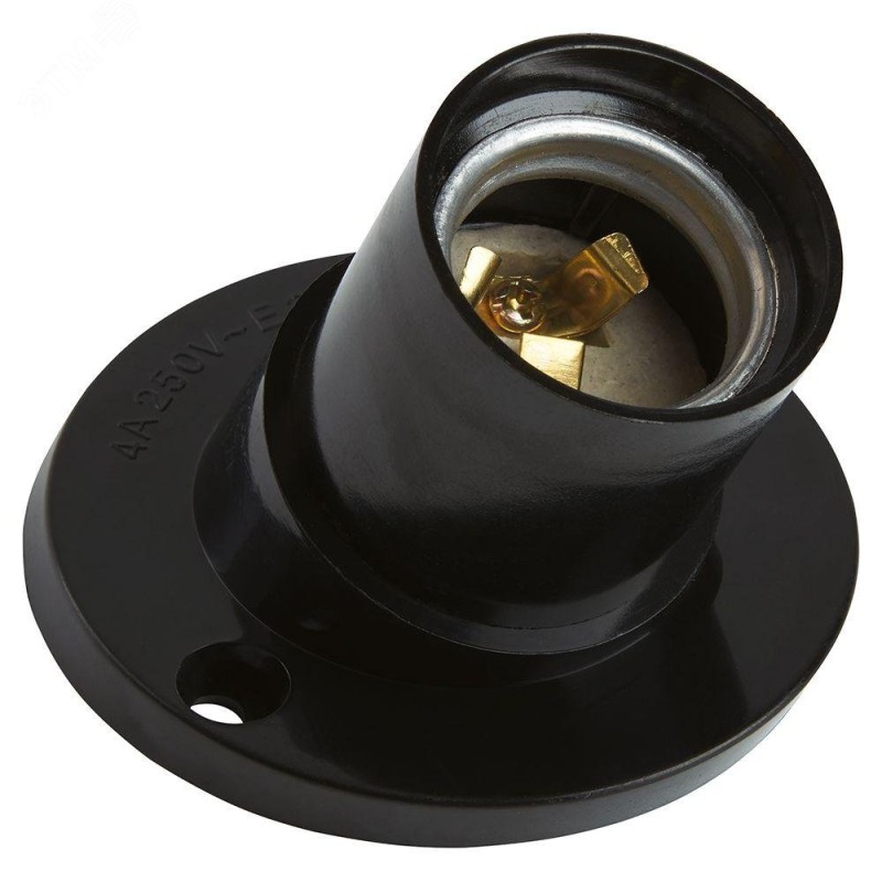 LH84 Патрон Е27 настенный наклонный, 250V, 4A, карболит, латунь, черный, размер 81*71*60 мм