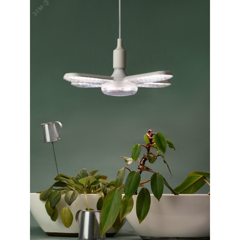 Лампа 5-ти лепестковая полного спектра мощностью 65 Вт создана для того, чтобы ваши растения получали именно тот свет, который им необходим для активного роста и развития. Световой поток в 117 мкмоль/с обеспечит яркое и насыщенное освещение, сравнимое с солнечным, а приятное свечение ''чайной розы'' с цветовой температурой 4100 К не утомит ваши глаза и создаст комфортную атмосферу в доме. Фитолампа ЭРА GREEN LINE – это универсальное решение для всех видов растений. Она восполнит недостаток солнечного света, особенно в осенне-зимний период, и поможет вашим любимцам оставаться здоровыми и красивыми круглый год. Рекомендуемая высота подвеса и площадь освещения легко регулируются в зависимости от потребностей ваших растений.