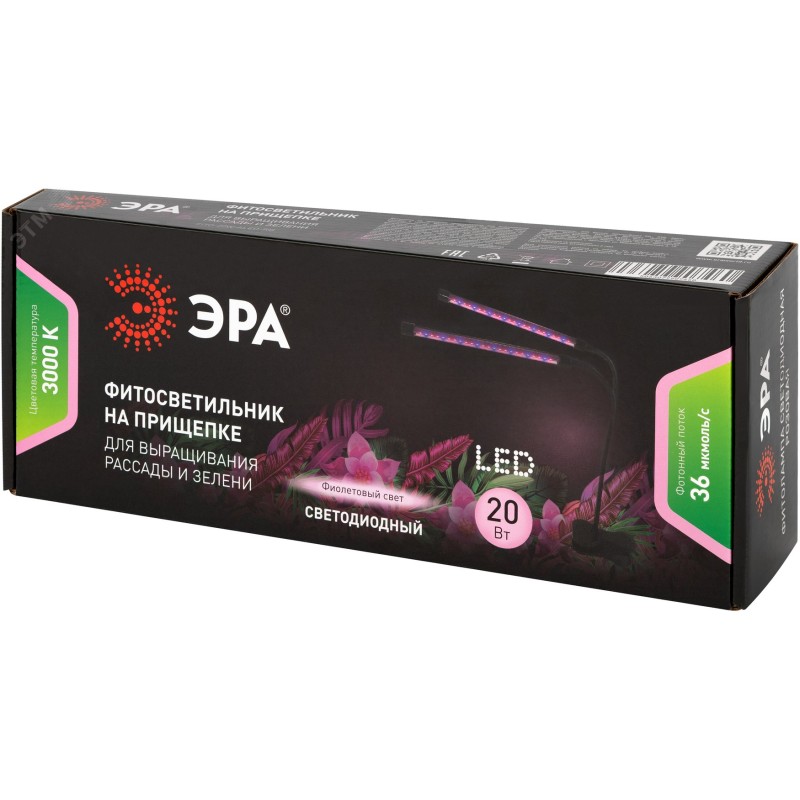 - Преимущества:Устойчивый к воздействию пыли и брызгам воды|Полный спектр, идеально подходящий для всех стадий роста растений|Температура эксплуатации: от +1 до +35 градусов C|Коэффициент мощности (PF): 0.52, обеспечивающий эффективное использование энергии|Лампа не перегревается, не мерцает и не излучает вредный ультрафиолет и инфракрасные лучи|Не выделяет никаких вредных паров|Крепление на прищепке