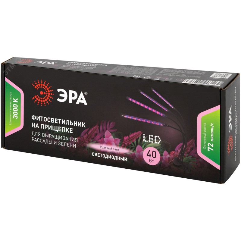 - Преимущества:Устойчивый к воздействию пыли и брызгам воды|Полный спектр, идеально подходящий для всех стадий роста растений|Температура эксплуатации: от +1 до +35 градусов C|Коэффициент мощности (PF): 0.52, обеспечивающий эффективное использование энергии|Лампа не перегревается, не мерцает и не излучает вредный ультрафиолет и инфракрасные лучи|Не выделяет никаких вредных паров|Крепление на прищепке