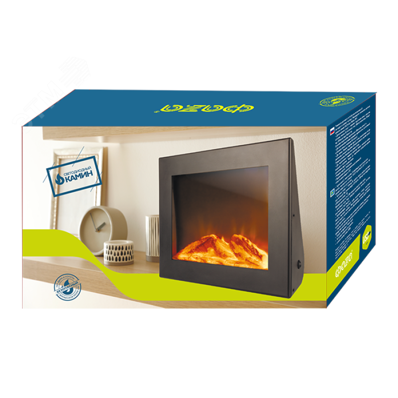 Декоративный светильник ''Светодиодный камин''. Реалистичная имитация живого огня. Безопасен в использовании, нет дыма и копоти, нет открытого огня. Светодиодная технология с малым потреблением энергии Можно расположить в любом месте в помещении (нет привязки к питанию от сети) Дополнительная опция – возможность подключения светильника ко внешнему источнику питания 5 В постоянного тока (USB-порт компьютера, USB-адаптер, USB-выход пауэр бэнка и т.п.)