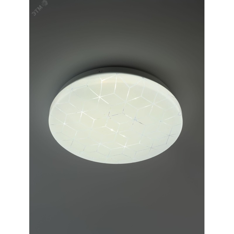 - Преимущества:Глянцевый рассеиватель с кубическим орнаментом|Компактный размер светильника|Простой и быстрый монтаж|Равномерное распределение света без бликов и дискомфорта для глаз|Встроенные светодиоды обеспечивают низкое энергопотребление