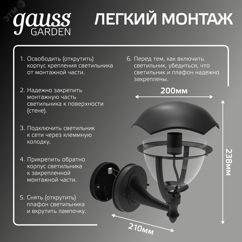 - Преимущества:Возможность использования на улице|В комплект поставки входят саморезы и дюбеля|Длительный срок службы|Удобство монтажа
