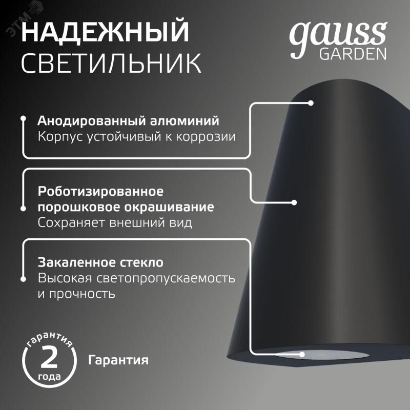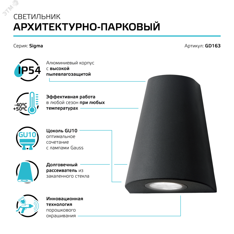 Садово-парковый светильник Gauss серии Sigma гармонично дополнит дизайн вашего интерьера загородного дома. Разработаны такие светильники по новейшим технологиям с применением лучших материалов - алюминиевого корпуса с высокой пыле- и влагозащитой IP54, что позволяет светильнику эффективно работать в любой сезон, даже при -40 до +50 градусов. Светильники серии Sigma предназначены для общего и декоративного освещения. Безупречное исполнение и качественная сборка позволяют устанавливать светильники на придомовых территориях, фасадов зданий, террас ресторанов и кафе. Такие светильники Gauss имеют два источника света, направленных в разные стороны с цоколем GU10. Используйте садово-парковые светильники Gauss серии Sigma для создания неповторимого уютного стиля вашей придомовой территории.