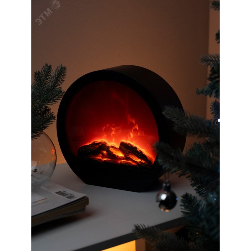 Декоративный светильник СВЕТОДИОДНЫЙ КАМИН. Реалистичная имитация живого огня. Диаметр 25 см. Работает от 3-х батареек типа АА или от USB-порта. Материал корпуса - полистирол.