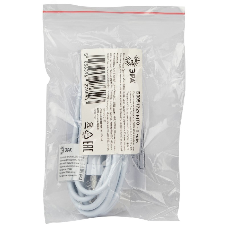 Кабель питания для линейного светильника ЭРА FT-С7-plug-1,5 коннектор IEC C7 длина 1,5 м