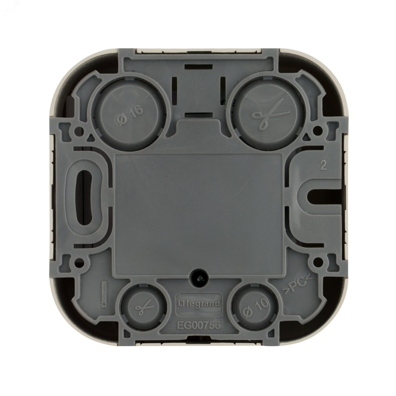 - Преимущества:Современный формат накладного монтажа|Механизм изготовлен из высококачественного поликарбоната, не проводит электрический ток, не поддерживает горение|Простое выравнивание изделий при установке в ряд, благодаря специальной форме основания|Корпус ударопрочный из пластичного полипропилена, стойкого к внешним воздействиям|Перфорация на корпусе для безошибочного вырезания отверстий при монтаже открытой проводки|В основании преднарезаны 4 отверстия для подвода кабеля при монтаже скрытой проводки