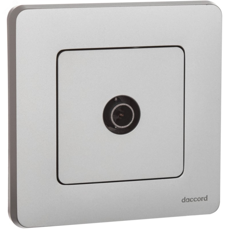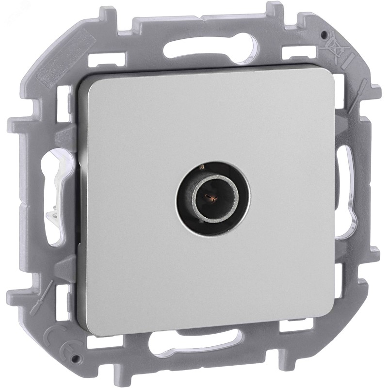 Розетка телевизионная для скрытого монтажа Inspiria, для схемы ''звезда'', затухание 1дБ, 4-2400МГц, поддержка обратного питания для активных антенн до 500мА, цвет ''Алюминий''. Предназначена для подключения одного ТВ приемника к антенне, а также для организации телевизионной сети по схеме ''звезда'', когда к каждому телевизору прокладывается своя линия от источника сигнала.