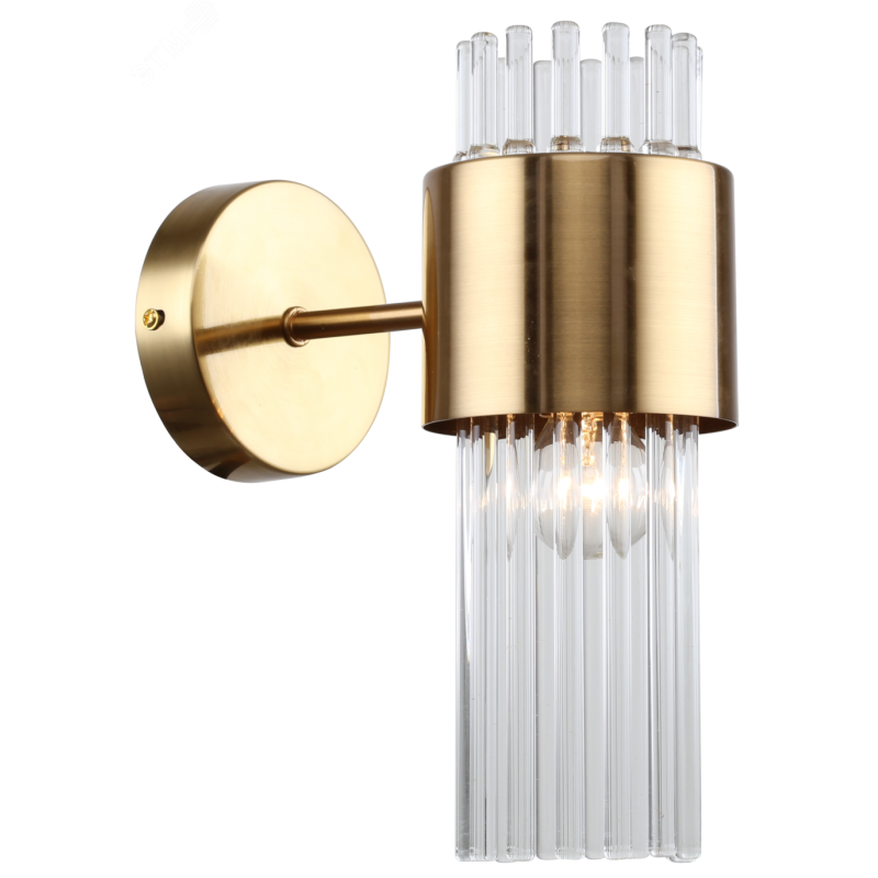 Бра настенное в цвете французское золото, с цилиндрическим плафоном из прозрачных стеклянных трубочек. Источник света для данного бра – лампа Е14 40 Вт (приобретается отдельно). Светильник настенный Rivoli Donna (арт. 3149-401) создаёт яркое дополнительное освещение. Размеры бра: 190х100х260 мм. К данному светильнику настенному можно купить люстры аналогичного дизайна: арт. 3149-305 – под 5 ламп, арт. 3149-307 – под 7 ламп. Коллекцию дополняет светильник подвесной – арт. 3149-201. Дизайнерская коллекция Rivoli Donna выполнена в стиле модерн. Золотые бра Rivoli Deborah украсят стену спальни, гостиной, кабинета, загородного дома. Золотые настенные светильники Deborah подойдут как в современный, так и в классический интерьер. Итальянский бренд Rivoli выпускает аналогичную коллекцию в цвете хром - Rivoli Deborah: арт. 3148-401, 3148-305, 3148-307, 3148-201.