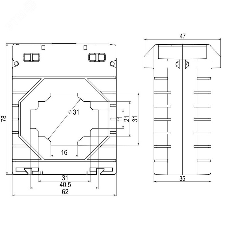 - Дополнительная информация:компактные размеры измерительного трансформатора позволяют производить монтаж, используя заводские аксессуары, что в свою очередь экономит место, время и сокращает количество соединений|трансформаторы производятся неразборными и опломбированными, что исключает доступ ко вторичной обмотке