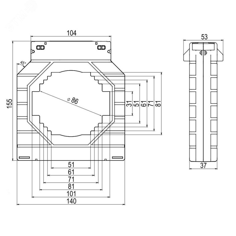 - Дополнительная информация:компактные размеры измерительного трансформатора позволяют производить монтаж, используя заводские аксессуары, что в свою очередь экономит место, время и сокращает количество соединений|трансформаторы производятся неразборными и опломбированными, что исключает доступ ко вторичной обмотке