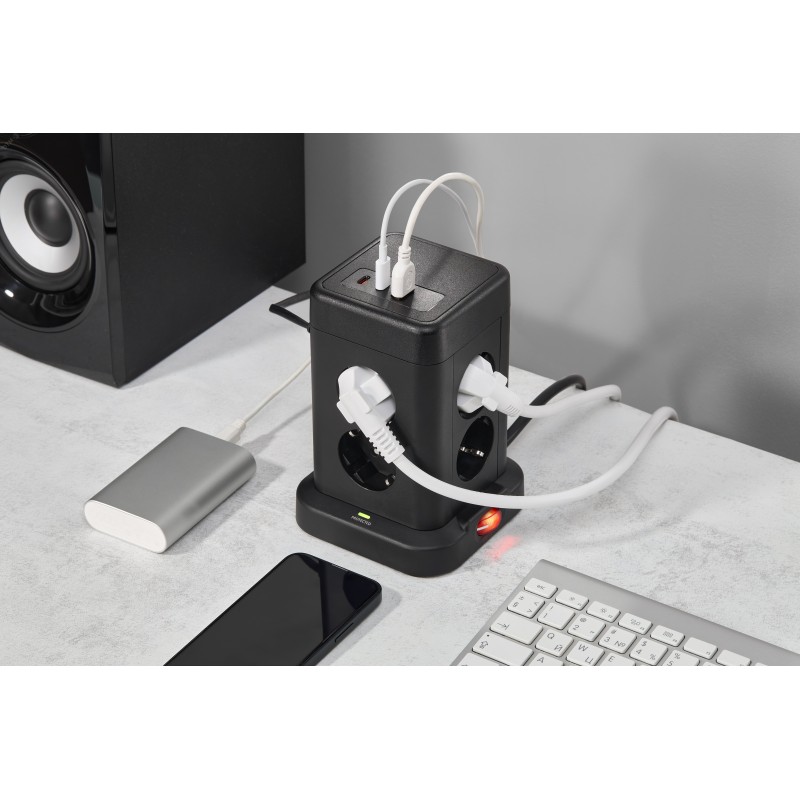 - Преимущества:Быстрая зарядка PD20W через USB-A и USB-C — подходит для смартфонов, планшетов и ноутбуков|8 розеток с заземлением и защитными шторками — безопасно и удобно|Защита от перенапряжений и перегрузок по току обеспечивает безопасность подключенной техники|ПВС-кабель с медными жилами (100% медь) — надежное питание и долговечность