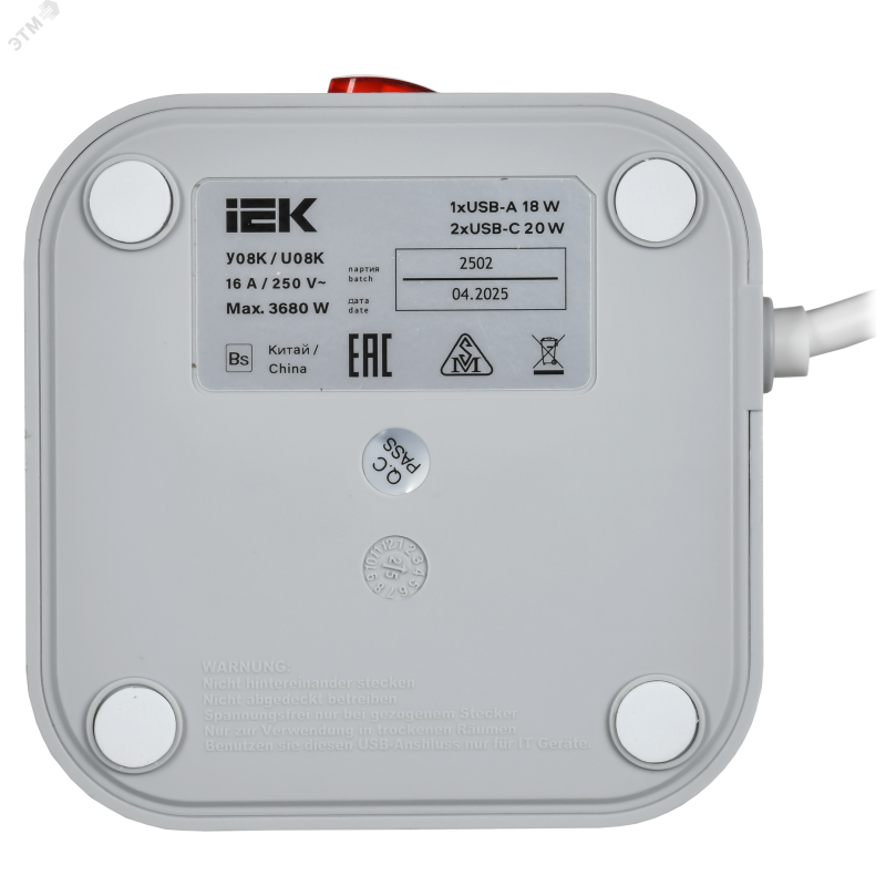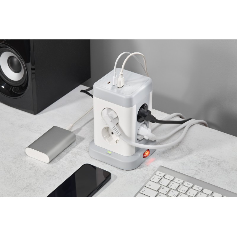- Преимущества:Быстрая зарядка PD20W через USB-A и USB-C — подходит для смартфонов, планшетов и ноутбуков|8 розеток с заземлением и защитными шторками — безопасно и удобно|Защита от перенапряжений и перегрузок по току обеспечивает безопасность подключенной техники|ПВС-кабель с медными жилами (100% медь) — надежное питание и долговечность