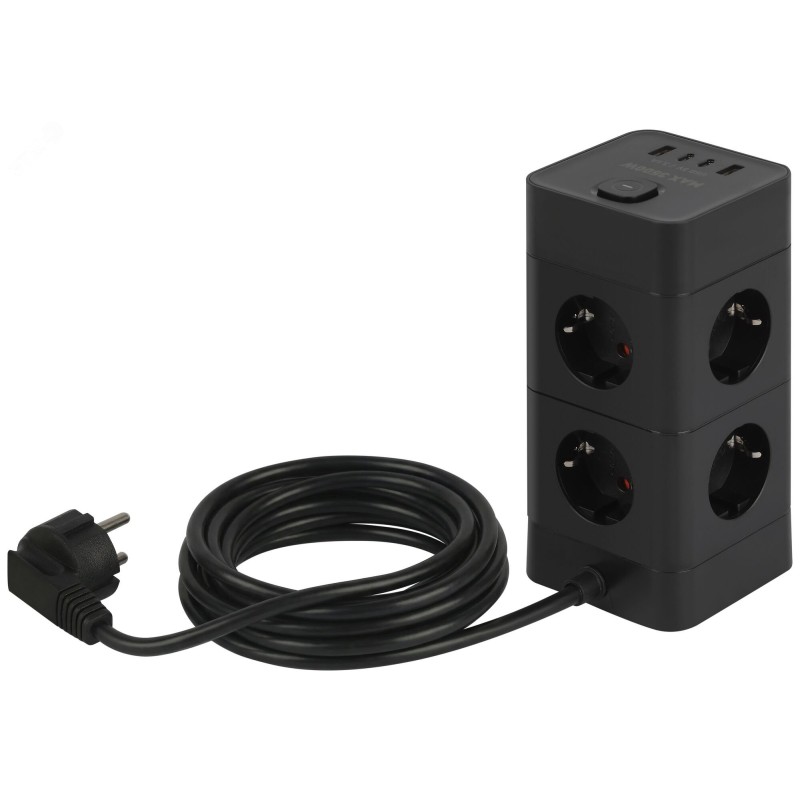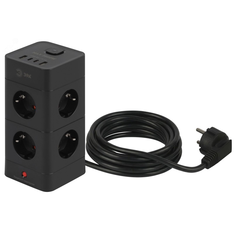 - Преимущества:Прочный корпус в виде башни из негорючего поликарбоната|Термореле для защиты от короткого замыкания и перегрузки|8 розеток с заземлением и защитными шторками + 4xUSBA+C|Выключатель со световой индикацией состояния сети