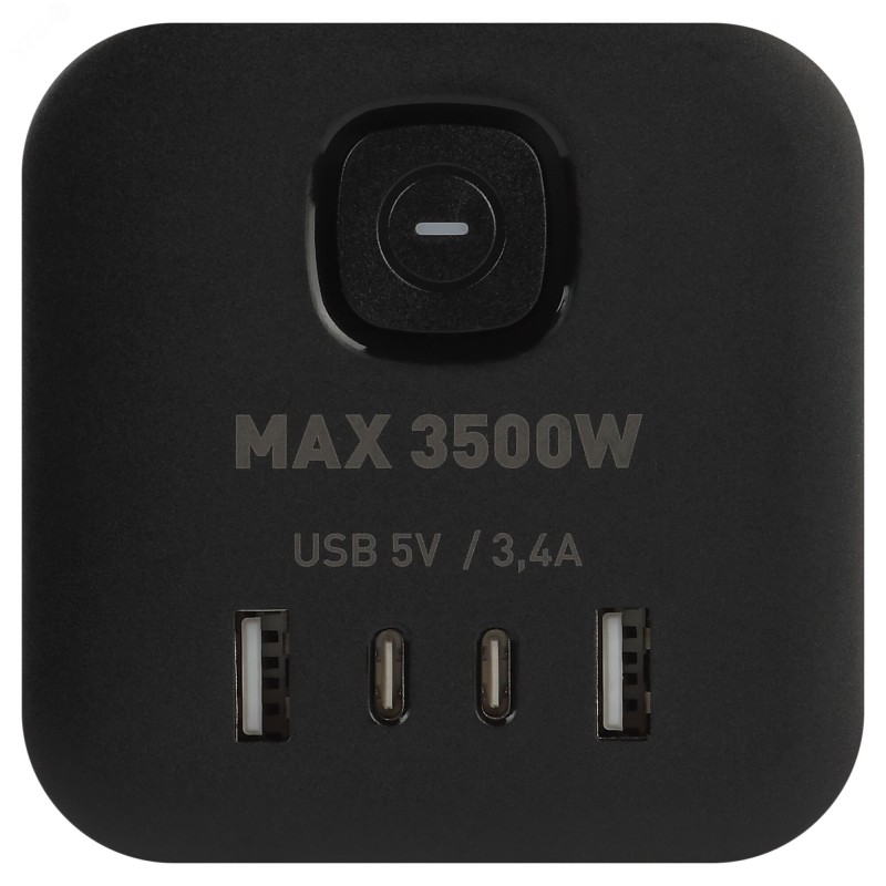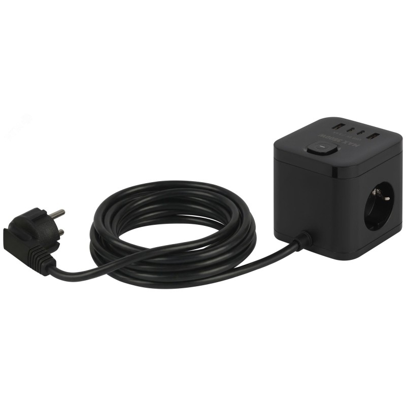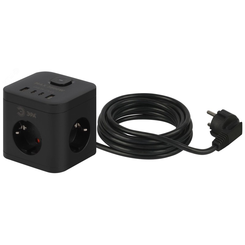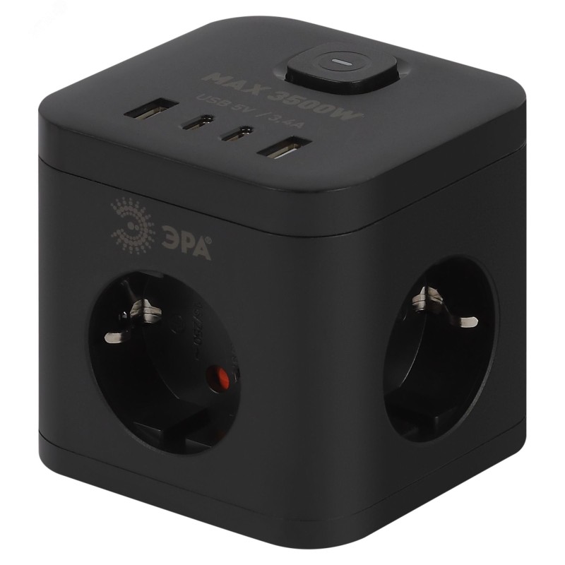 - Преимущества:Прочный корпус в виде башни из негорючего поликарбоната|4 розетки с заземлением + 2typeA+2typeC 3.4A/5V|Выключатель со световой индикацией
