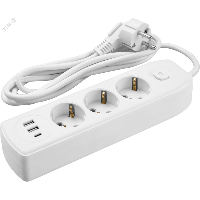 - Преимущества:Корпус из ударопрочного пластика, не поддерживающего горение|Контакты из латуни не подвержены коррозии, внутренняя конструкция удлинителя гарантирует надежный контакт в течение всего процесса эксплуатации|Три USB-разъема (2хUSB-A + USB-C, 2,4 А, 5 В) для подключение и зарядки электронных устройств|Выключатель с индикатором позволяет включать и выключать питание одним нажатием|Розетки расположены под углом для удобства подключения нескольких приборов|Вилка эргономичной формы из негорючего ПВХ-пластика|Гибий провод ПВС