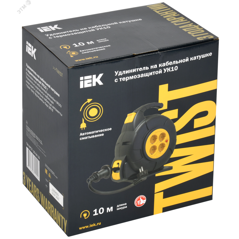 - Преимущества:Механизм автоматической смотки кабеля предотвращает его спутывание и залом|Литой корпус обеспечивает защиту устройства от повреждений и внешних воздействий|Фиксатор на кабеле предотвращает излишнюю смотку кабеля|Термозащита от повреждения кабеля и возгорания удлинителя при перегрузке и коротком замыкании