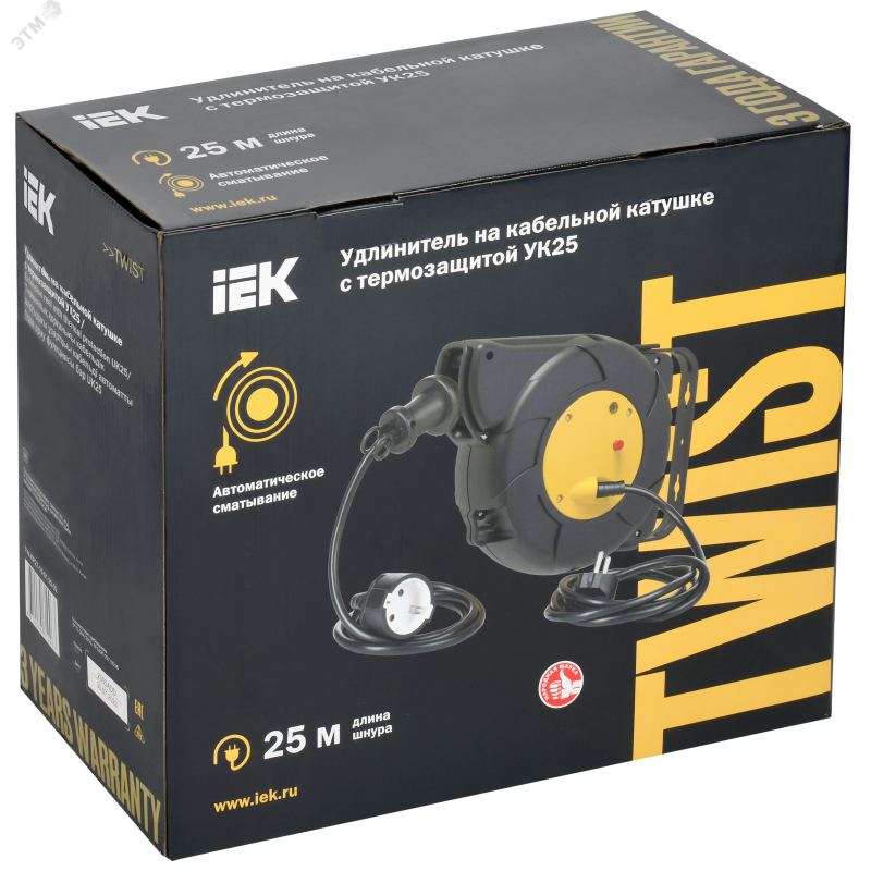 - Преимущества:Механизм автоматической смотки кабеля предотвращает его спутывание и залом|Литой корпус обеспечивает защиту устройства от повреждений и внешних воздействий|Фиксатор на кабеле предотвращает излишнюю смотку кабеля|Термозащита от повреждения кабеля и возгорания удлинителя при перегрузке и коротком замыкании