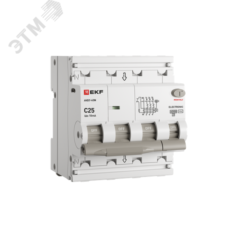 - Комплектация:АВДТ АВДТ-63N 3P+N 25А х-ка C 10мА тип A эл. 6кА PROXIMA EKF