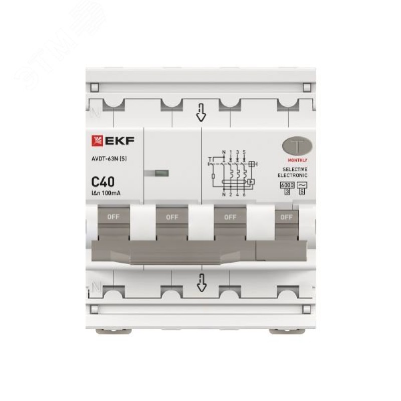 - Комплектация:диф. автомат АВДТ-63N 3P+N 40А (C) 100мА (AC-S) эл 6кА PROXIMA EKF