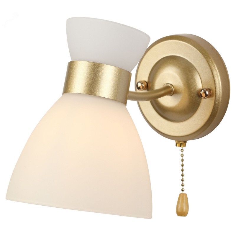 Серия золотых светильников с опаловыми плафонами — практичное и стильное решение в духе современной классики. В коллекции люстры на 5 и 8 ламп, а также бра с удобным выключателем-цепочкой. Подходят лампы с цоколем E27, мощностью до 60 Вт (лампы в комплект не входят).