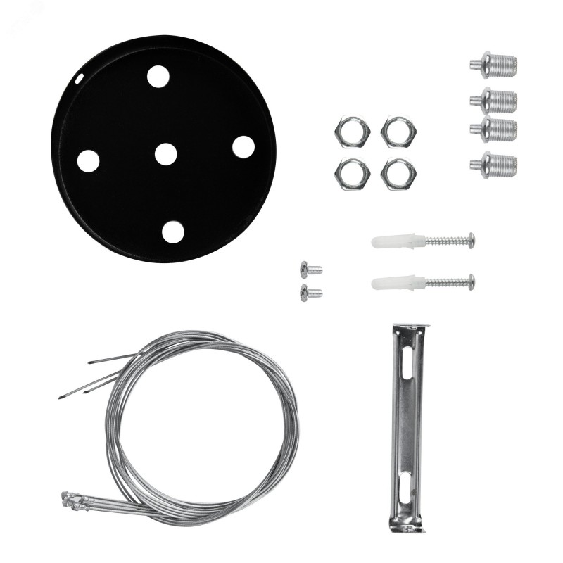 Набор креплений для подвесного монтажа светильников LED ЭРА Geometria. Подвесные светильники ''Geometria'' различных форм и размеров позволят реализовать дизайнерские идеи освещения пространства. Для каждой модели доступно 2 варианта цвета: белый и черный. Предусмотрена возможность регулировки высоты установки до 1м при помощи троса.