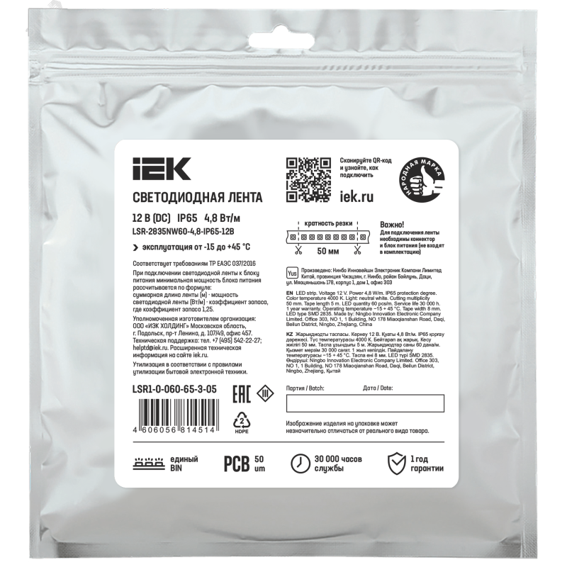 - Количество светодиодов:60 LED/м