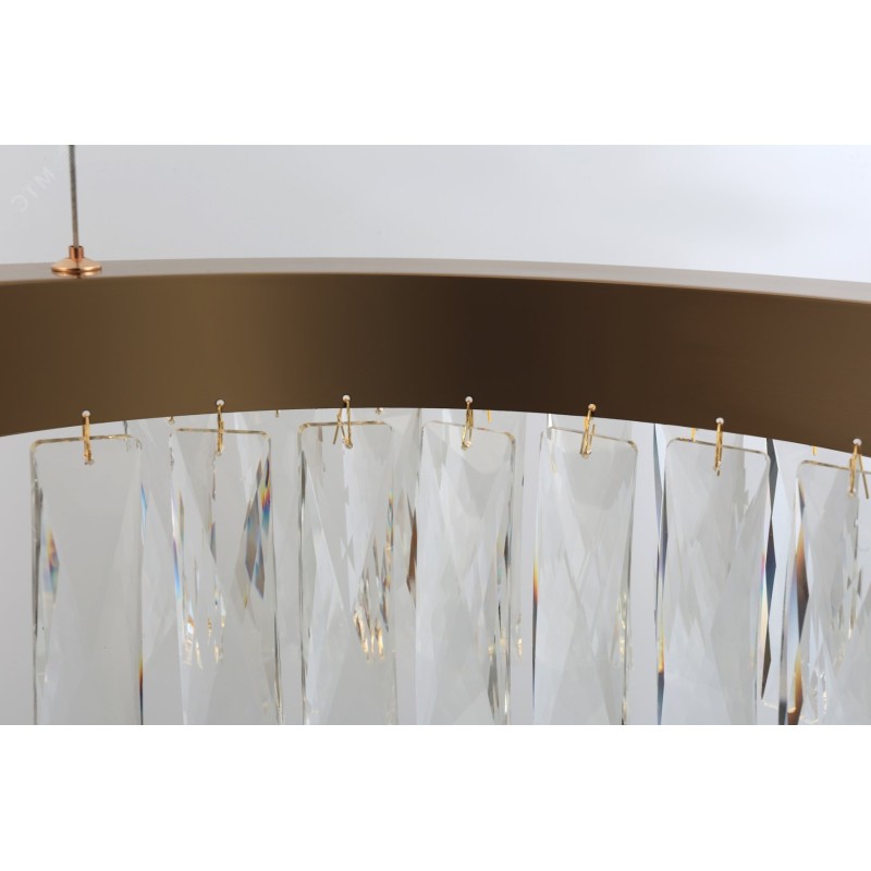 Элегантная круглая светодиодная люстра Rivoli Mary (арт. 6129-101) с двумя рядами изящных хрустальных подвесок — это сочетание классической роскоши и современных технологий. Корпус из металла с изысканным золотисто-медным покрытием добавляет изделию теплого благородного оттенка, подчеркивая статус и утонченность интерьера. Люстра отлично подходит для просторных гостиных, столовых и холлов, становясь главным акцентом в интерьере. Регулируемая высота подвеса, максимальная длина которого составляет 800 см, позволяет адаптировать люстру под любые помещения, от высоких потолков до более уютных пространств. Несмотря на свой классический стиль, люстра органично вписывается и в современные интерьеры, добавляя им нотку изысканности и шарма. Эта люстра — символ утонченного вкуса и безупречного стиля, создающая атмосферу комфорта и роскоши в любом доме.